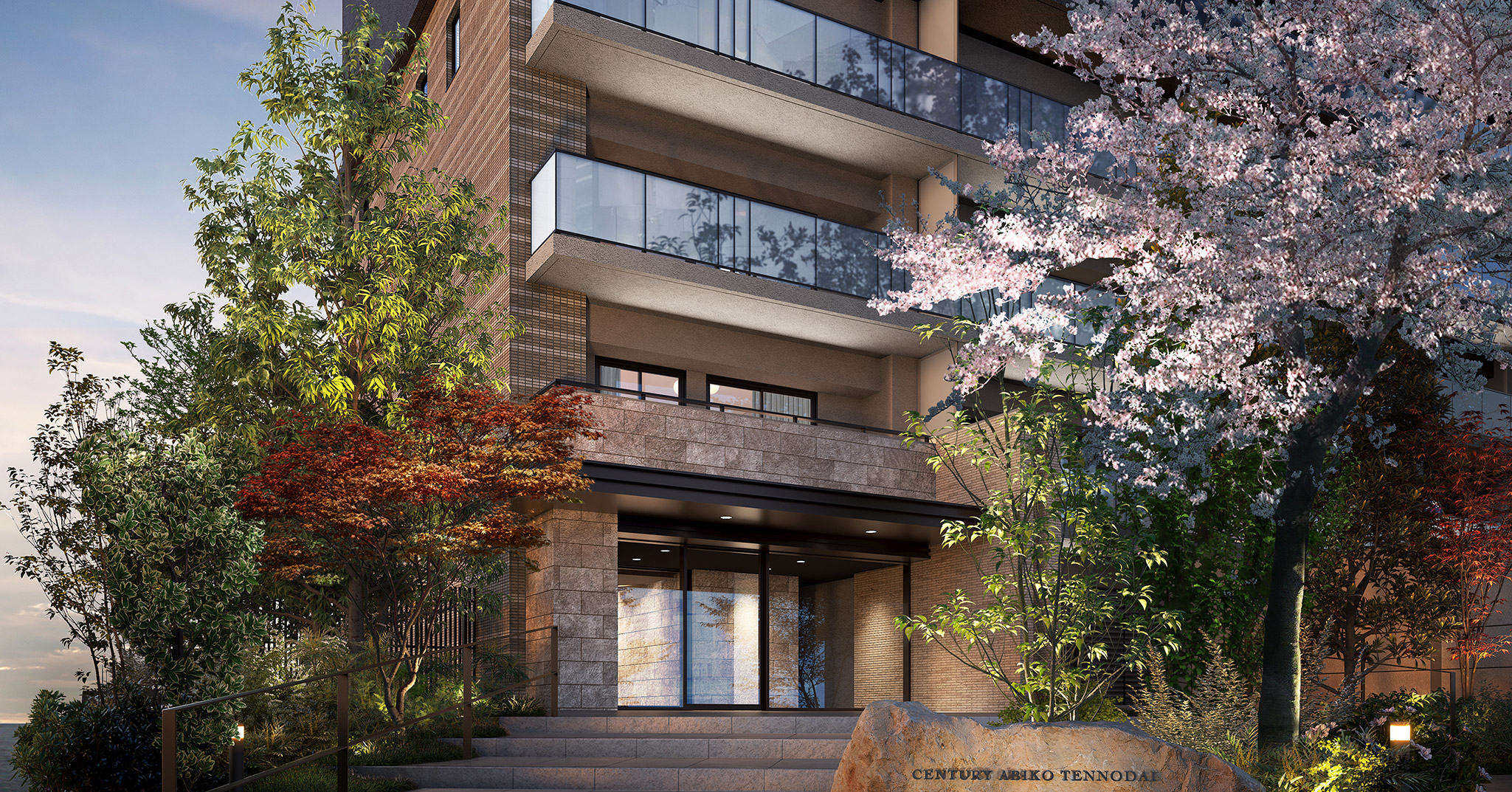 ※掲載の各完成予想図は計画段階の図面を基に描いたもので実際とは異なります。また、今後変更になる場合があります。なお、外観の細部・設備機器・配管類及び電柱・架線・道路標識・周辺建物等は一部省略または簡略化しております。植栽につきましては特定の季節の状況を表現したものではなく、竣工時には完成予想図程度には成長しておりません。タイルや各種部材につきましては、実物と質感・色等の見え方が異なる場合があります。