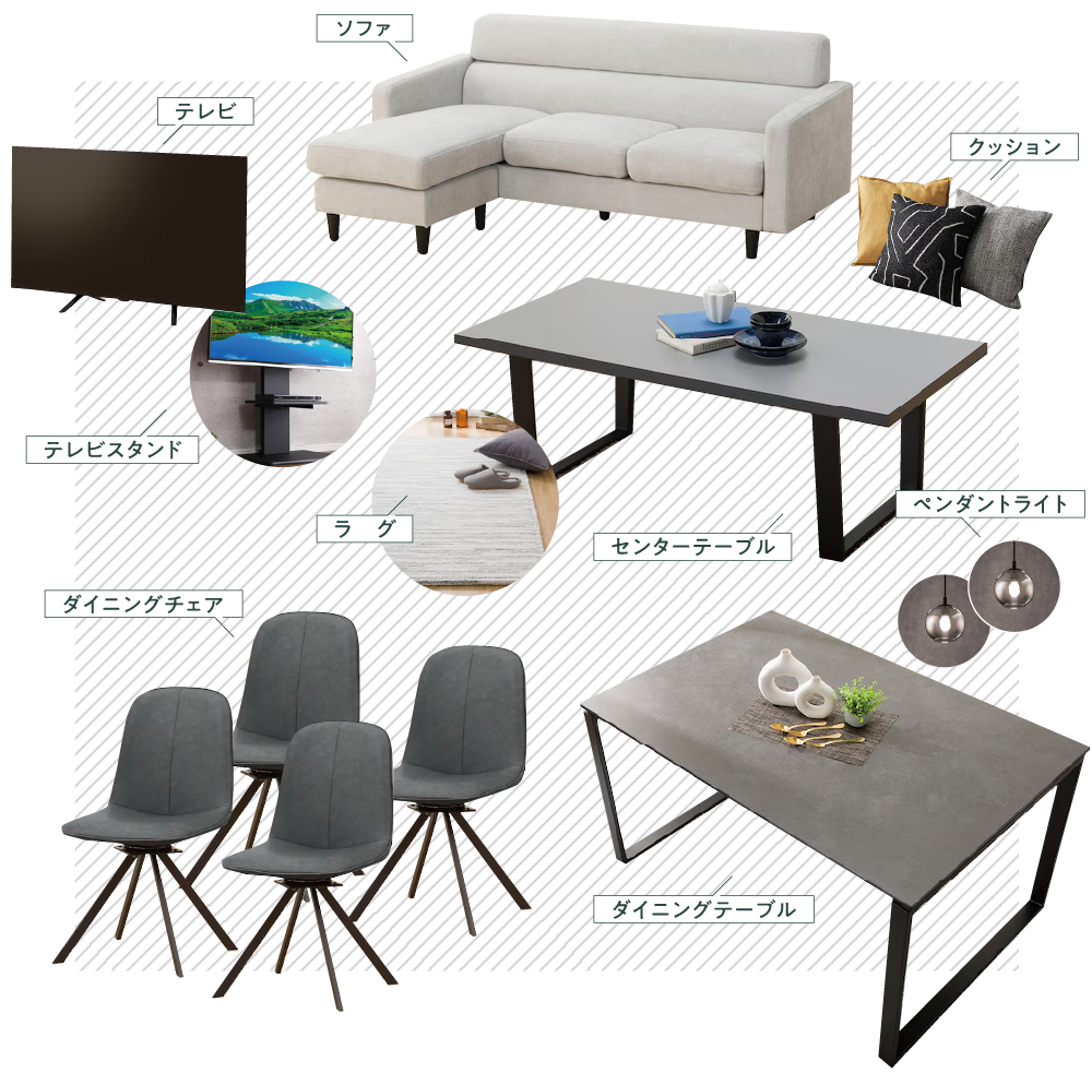 ※リビング・ダイニングのみの設置となります。※家具・小物は在庫状況により変更になる場合がございます。※詳しくは現地係員にお問い合わせください。