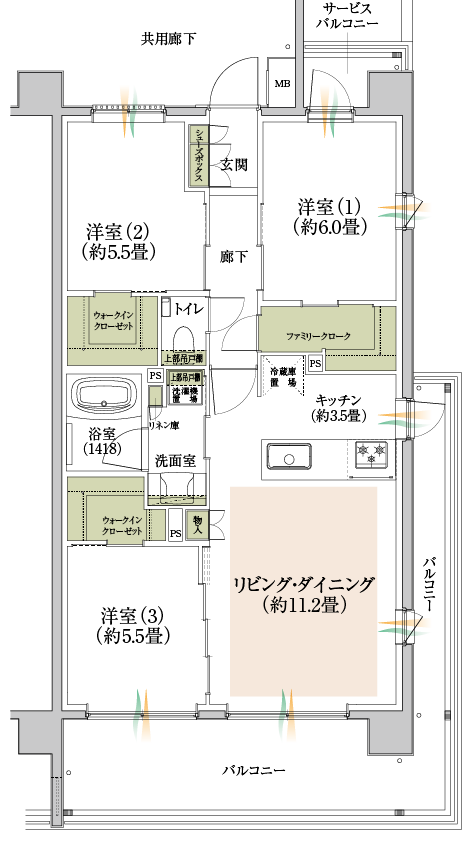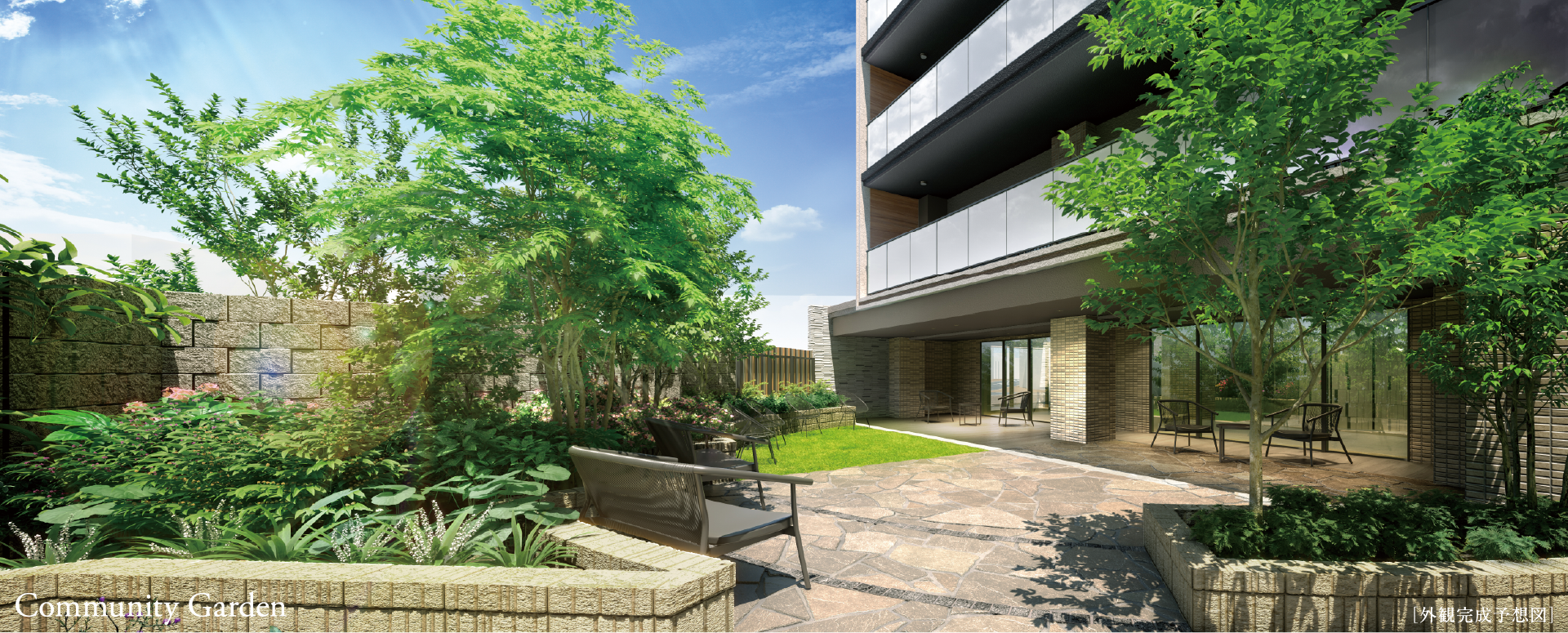 ※掲載の完成予想図は、計画段階の図面を基に描き起こしたもので、実際とは多少異なる場合があります。敷地の植栽の樹種、大きさについては未確定となっており、竣工時には完成予想図程度には成長致しません。植栽は特定の季節の状況を示すものではありません。なお建物外観をご覧いただくために隣地建物等を省略・簡略化しており、実際の風景とは異なります。※掲載の徒歩分数・距離は全て現地からのもので、徒歩分数は80mを1分とし小数点以下を切り上げています。※掲載の写真はモデルルーム(Nタイプ)を撮影したもので家具・調度品やオプション仕様等は販売価格に含まれません。サイズ・形状については住戸により異なる場合がございます。(2025年9月撮影)