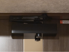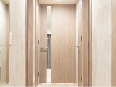 ドアクローザー開き戸 閉鎖速度を減衰させるドアクローザー機能を採用した開き戸。