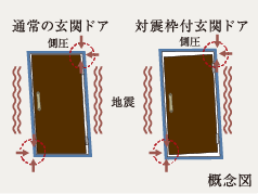 玄関ドア耐震性 耐震枠を採用し、万が一の災害時にもお子様が避難できるように配慮しました。