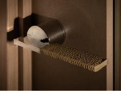 レバーハンドル 閉鎖速度を減衰させるドアクローザー機能を採用した開き戸。