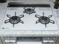 チャイルドロック機能付きコンロ お子様がによる誤作動を防ぐチャイルドロック機能が付いたコンロ。