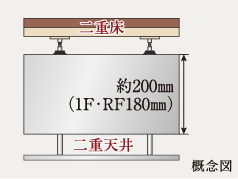 スラブ厚200mm以上 下階への生活音の伝わりに配慮したスラブ厚さを確保。