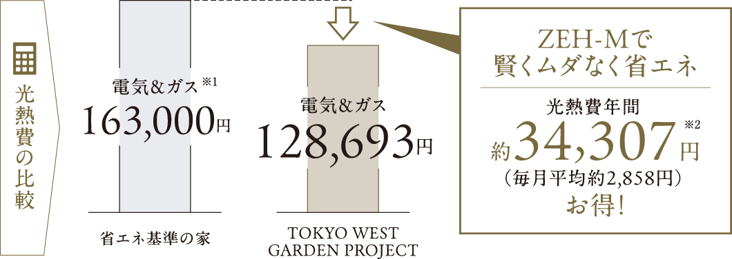 ※2:TOKYO WEST GARDEN PROJECT205号室を算出した数字です。※金額は住戸によって異なります。※モデルケースで試算した金額であり、ご家族構成や消費量によって異なります。